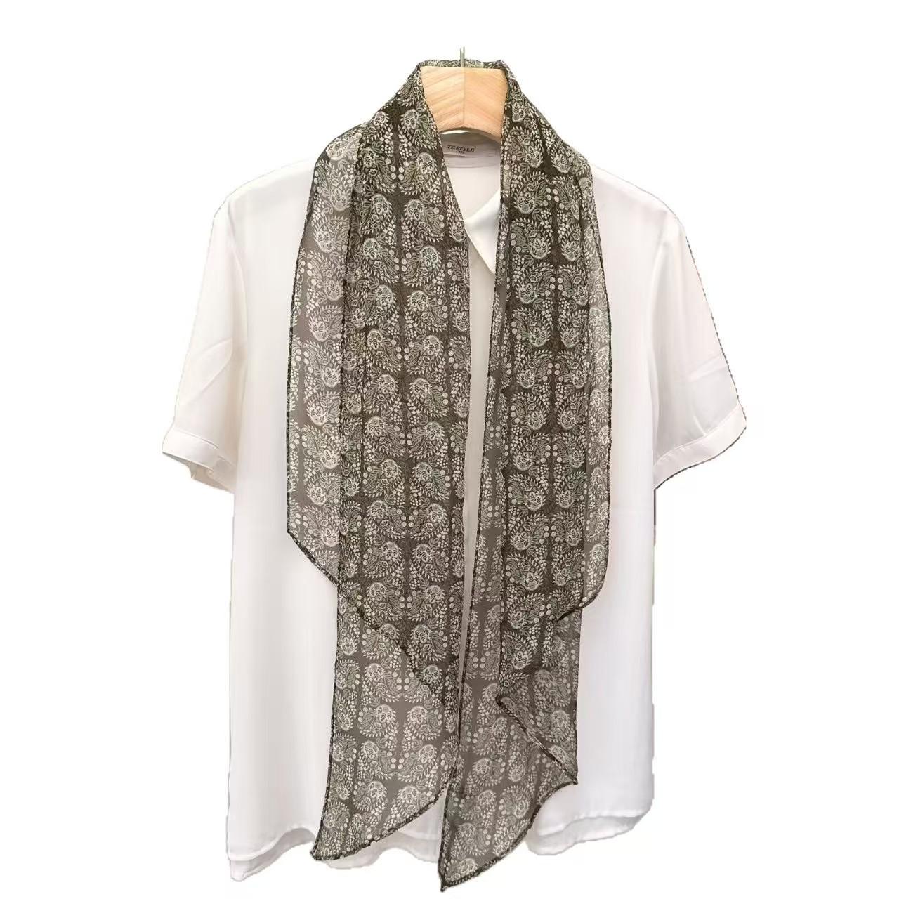 Pairing with White/Cream White (Fresh and Bright): There are many white flowers and water blue elements in the scarf. Pairing with a pure white shirt, a cream-colored knit sweater, or a creamy-white blazer can maximize the display of the scarf's colors and patterns.