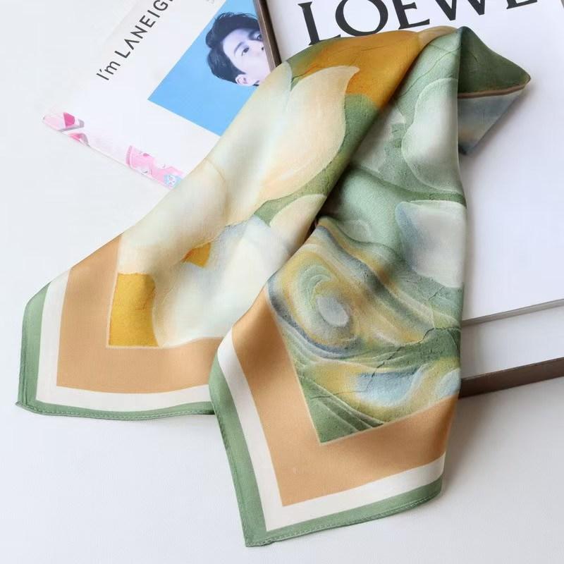 This is a highly designer-oriented artistic silk scarf. Due to the misty quality of its mineral and watercolor pigment effects, it is recommended to pair it mostly with clothing made of natural materials (such as cashmere, silk, high-quality cotton/linen). Its soft color palette is not suitable for pairing with clothing that is too utilitarian or has an overly industrial feel. It is a powerful tool for elevating the artistic temperament of an overall look.