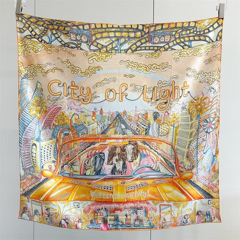 Whether tied at the neck, draped over a cream coat, or framed as wall art, "City of Light" brings a cinematic soul to your wardrobe.