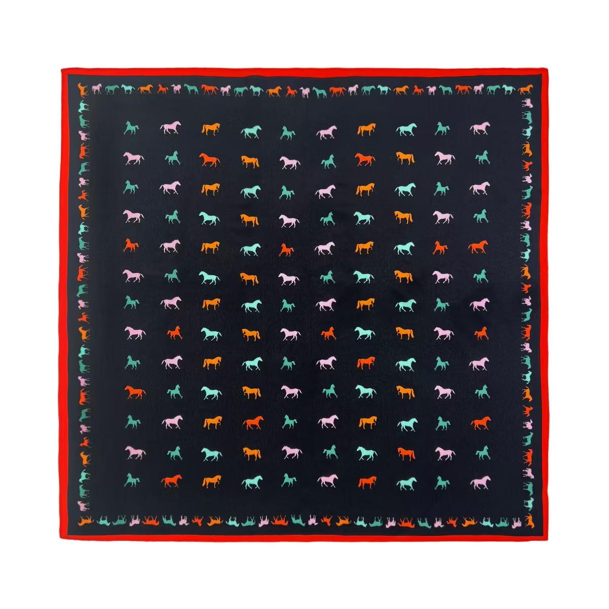 Elevate your wardrobe with the Classic Equestrian Silhouette Square Scarf. A perfect harmony of heritage horse motifs and modern pop-art aesthetics, this piece is designed for the woman who appreciates timeless elegance with a playful twist.