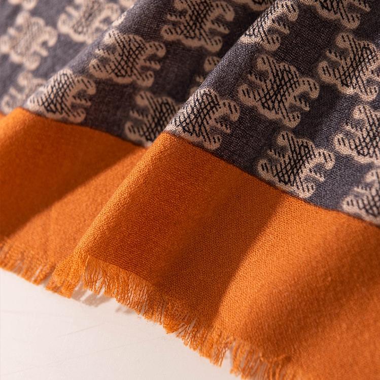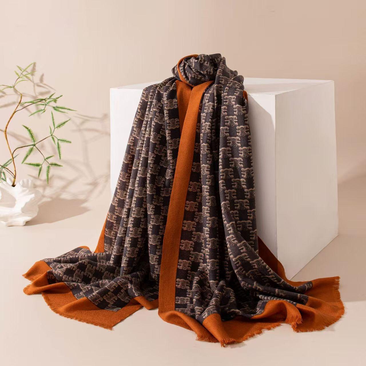 Vintage meets quiet luxury. Caramel orange & deep brown heritage monogram — woven into 100% Virgin Wool.