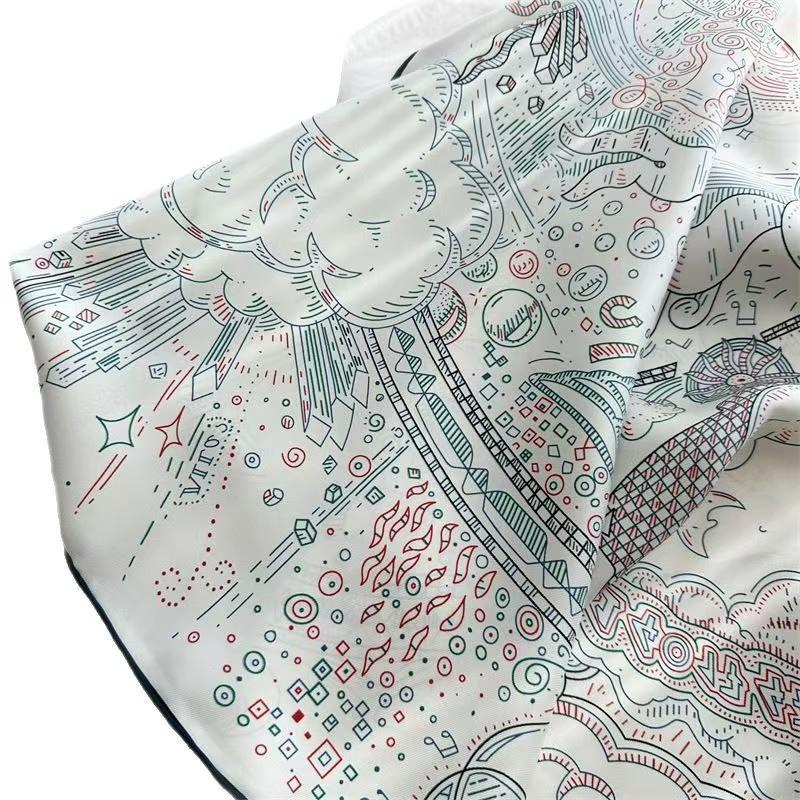 Featuring an innovative double-sided printing technique, this 18mm silk twill scarf offers a sophisticated Midnight Blue on one side and a serene Sage Green on the other. Adorned with mythical astrology sketches, it is the pinnacle of versatile luxury.