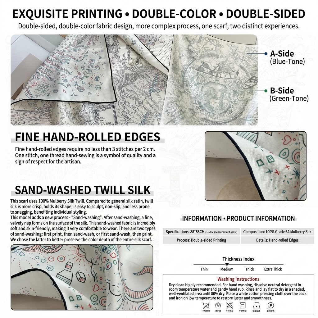 Artisanal Hand-Rolled Hems: Every piece is finished by hand, creating the iconic plump, rounded edges reserved for the world’s finest silk houses.